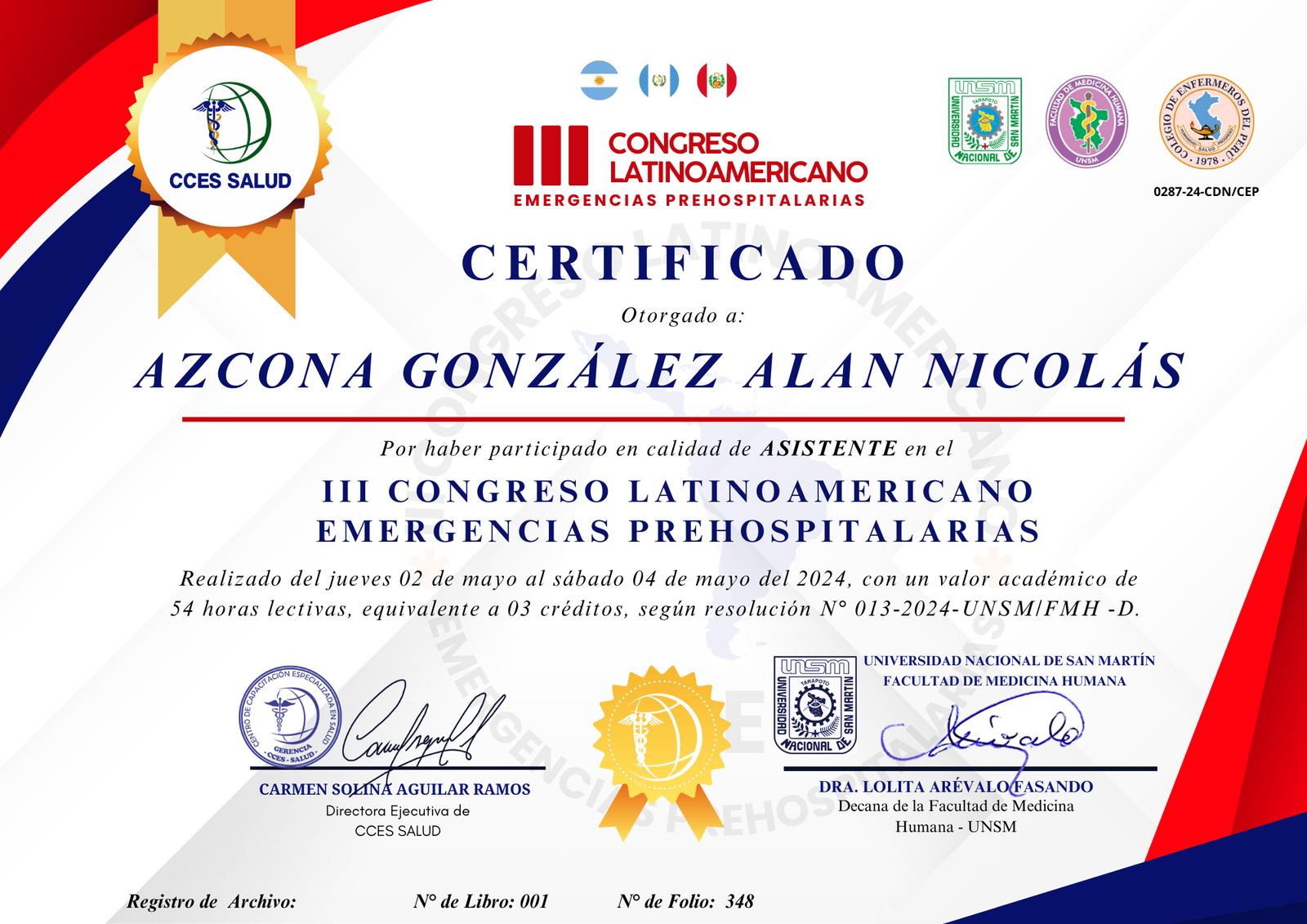 CURSO: III CONGRESO LATINOAMERICANO EMERGENCIAS PREHOSPITALARIAS