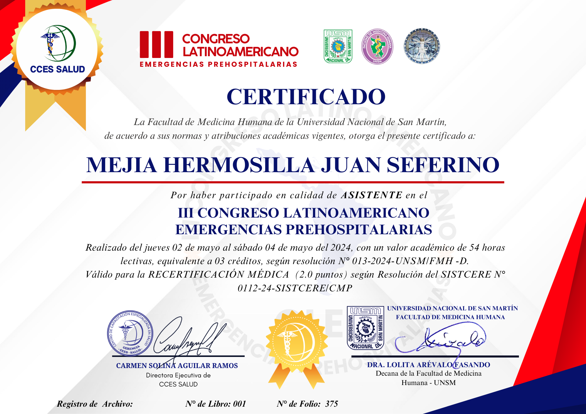 CURSO: III CONGRESO LATINOAMERICANO EMERGENCIAS PREHOSPITALARIAS