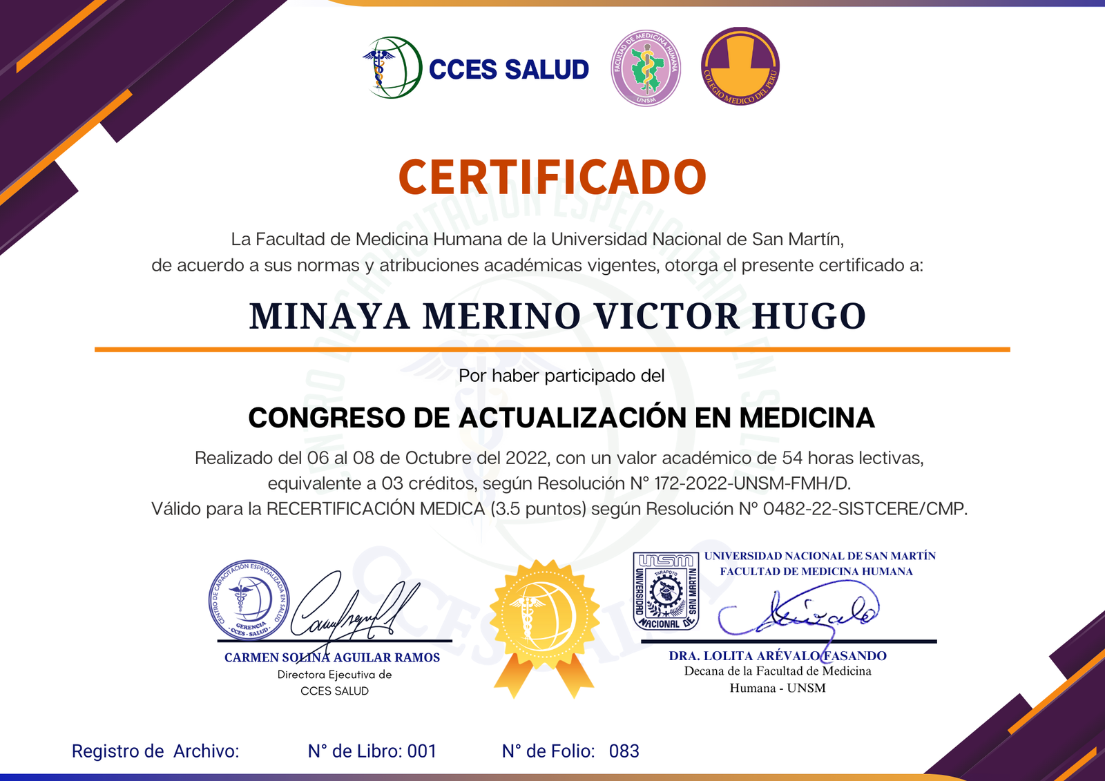 RESOLUCION: N° 0482-22-SISTCERE/CMP.