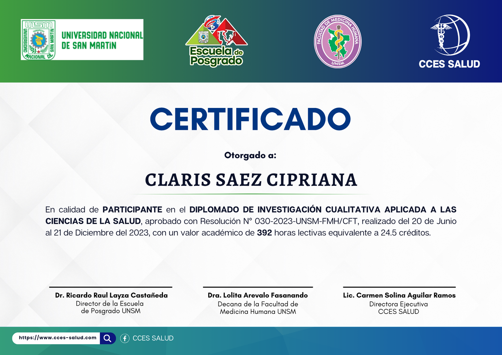 CURSO: DIPLOMADO DE INVESTIGACIÓN CUALITATIVA APLICADA A LAS CIENCIAS DE LA SALUD