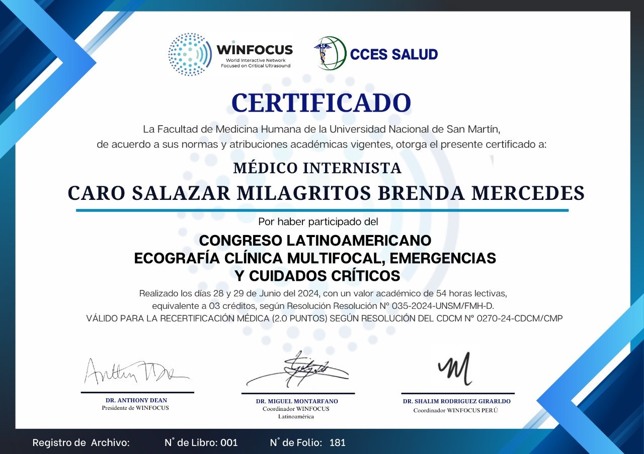 CURSO: CONGRESO LATINOAMERICANO ECOGRAFÍA CLÍNICA MULTIFOCAL, EMERGENCIAS Y CUIDADOS CRÍTICOS