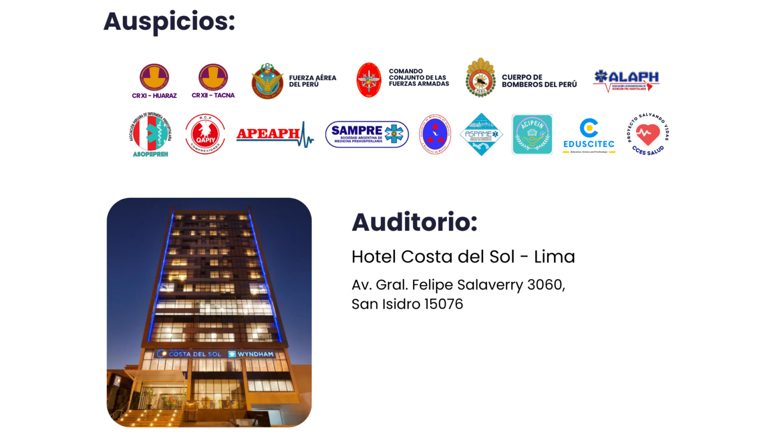 El V Congreso Latinoamericano de Emergencias Prehospitalarias es un espacio académico de actualización y encuentro profesional que reúne a especialistas del ámbito prehospitalario de Latinoamérica, orientado a fortalecer competencias, compartir experiencias y promover una atención oportuna, segura y basada en evidencia científica en escenarios de emergencia.