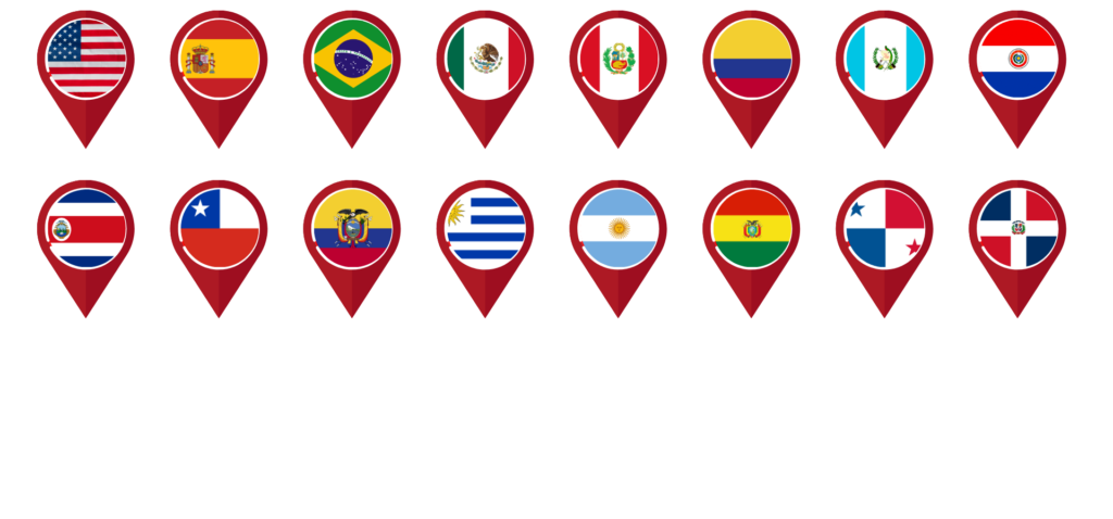 Argentina Bolivia Brasil Chile Colombia Costa Rica Estados Unidos Guatemala México Panamá Paraguay Perú República Dominicana Uruguay España Ecuador